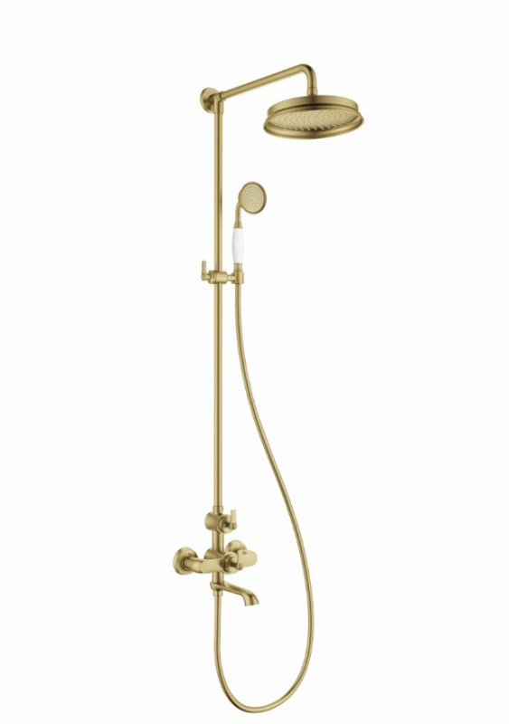 LIBERTY-CVD-T-BOROДушевая стойка с термостатическим смесителем, поворотным изливом, с ручным и верхним душемБрашированное золото