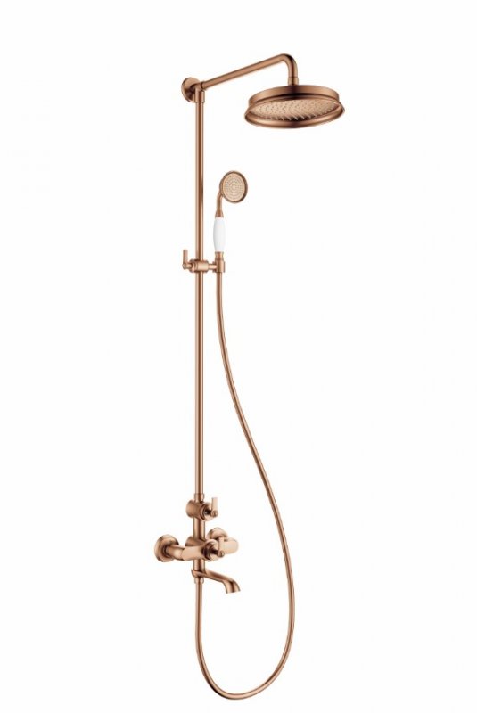 LIBERTY-CVD-T-BRДушевая стойка с термостатическим смесителем, поворотным изливом, с ручным и верхним душемБрашированное розовое золото