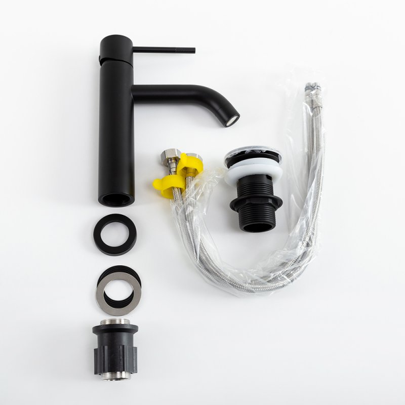 RELAX-LS1-NOPСмеситель для раковины с донным клапаномЧерный матовый