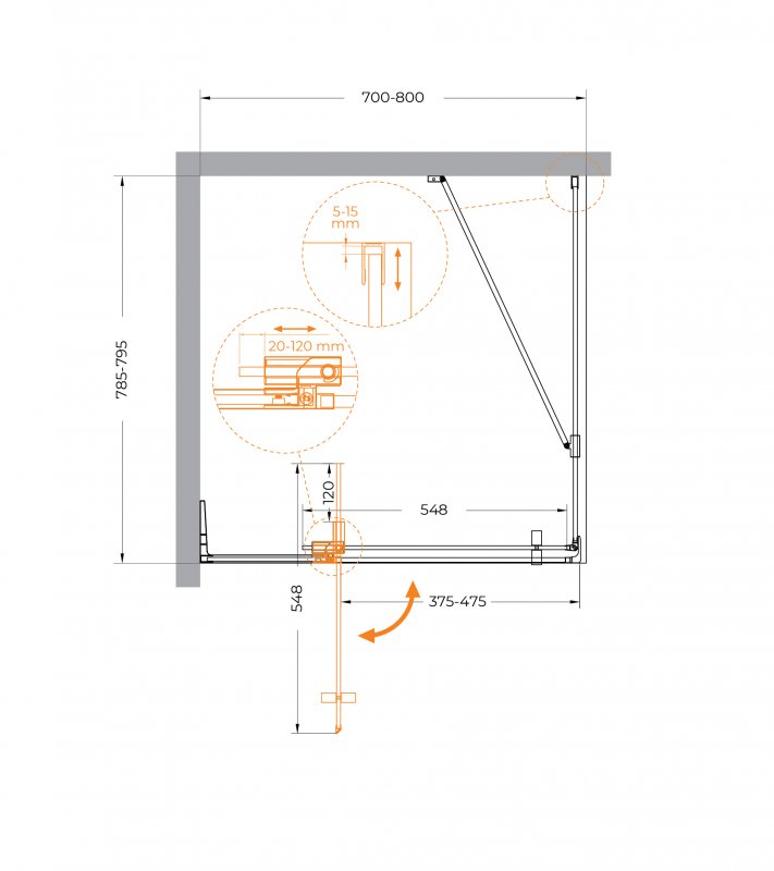 SLIDER-AH-1-90-70/80-BR-Cr | 900x(700-800)x1950 | (885-895)x(700-800)x1950