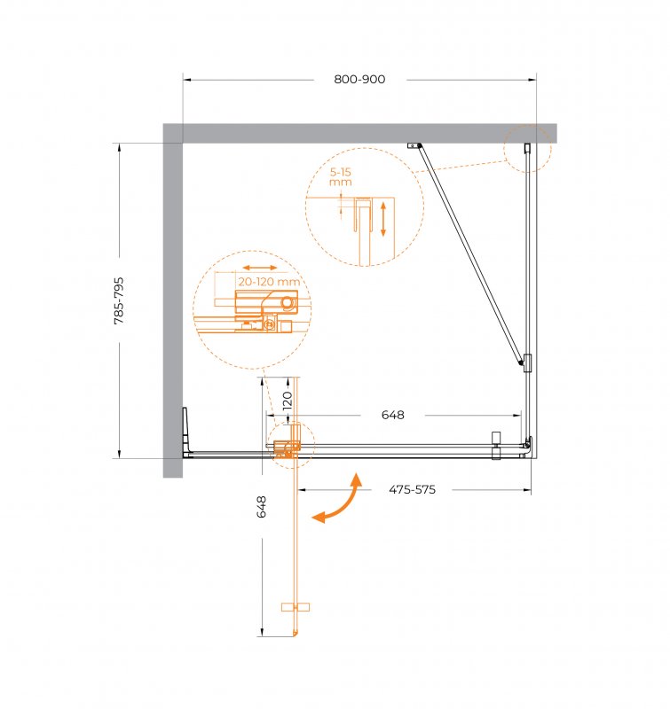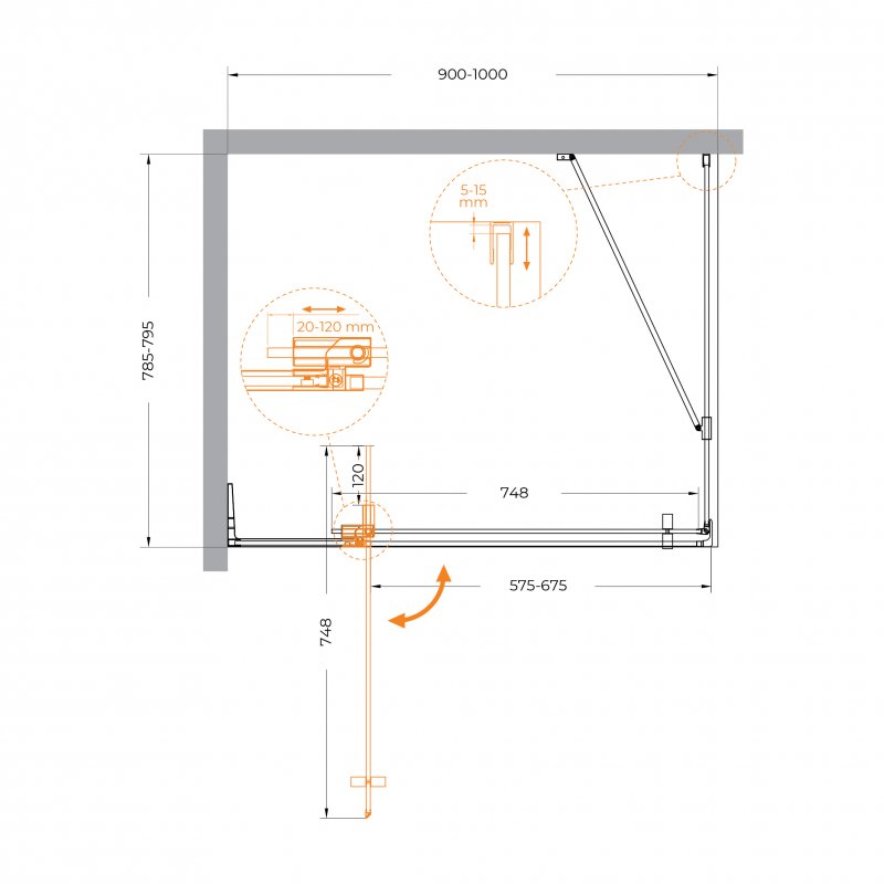SLIDER-AH-1-90-90/100-BR-Cr | 900x(900-1000)x1950 | (885-895)x(900-1000)x1950