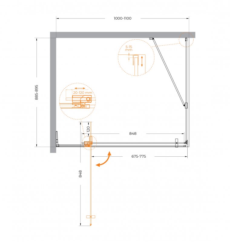 SLIDER-AH-1-90-100/110-BR-Cr | 900x(1000-1100)x1950 | (885-895)x(1000-1100)x1950