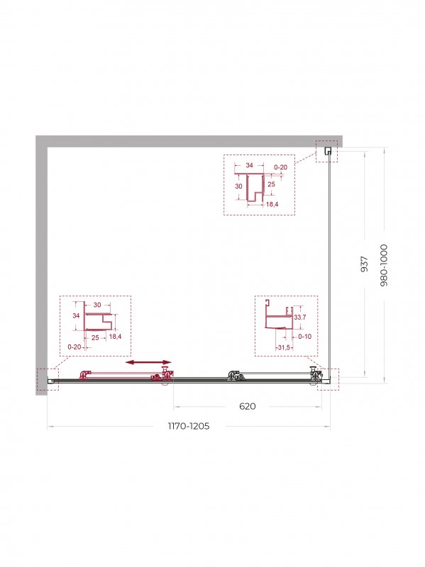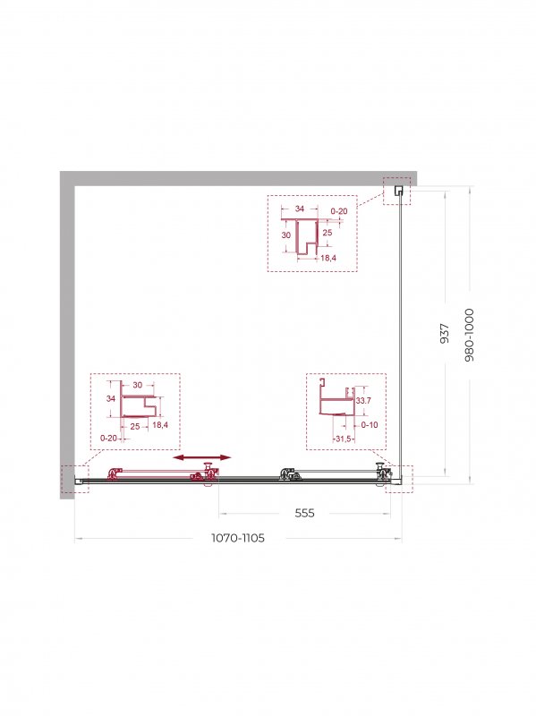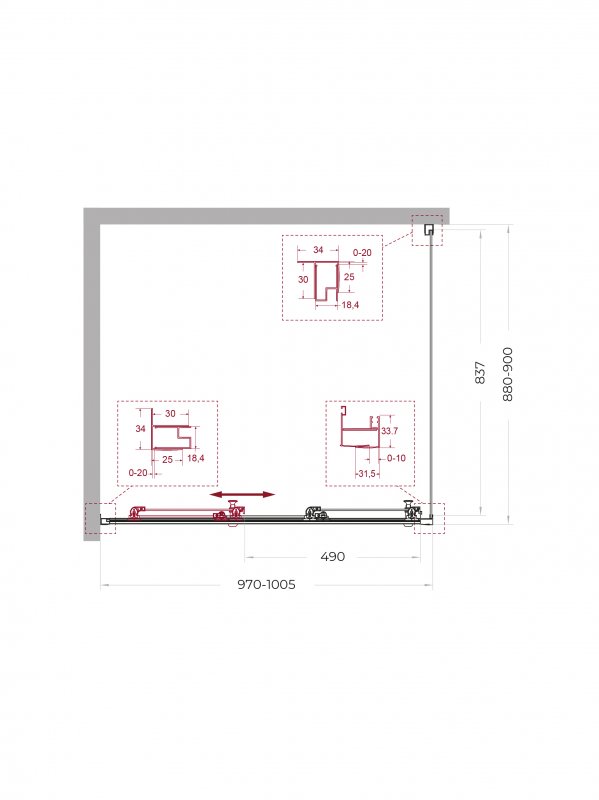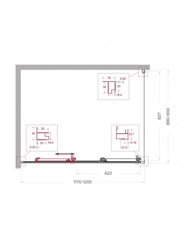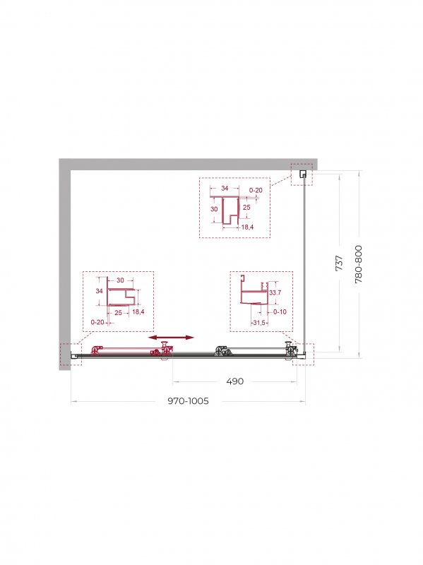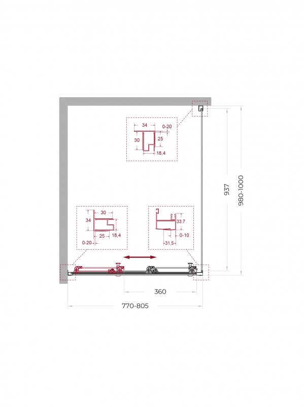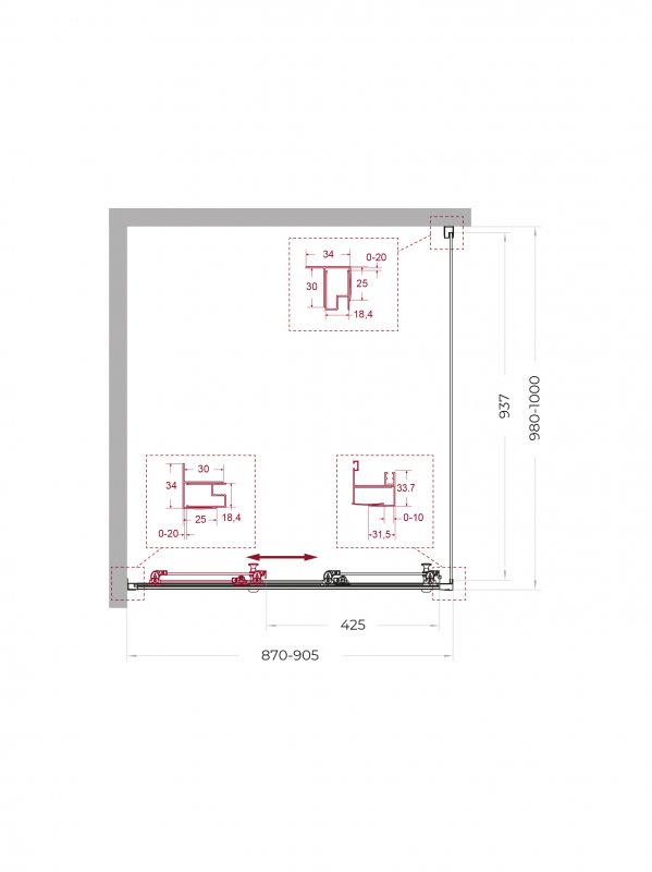 | UNO-195-AHF-31-90/100-C-NERO | 900x1000x1950 | (870-905)x(980-1000)x1950