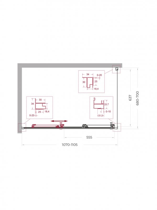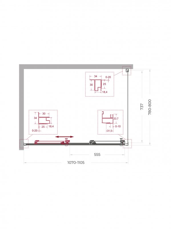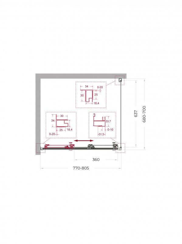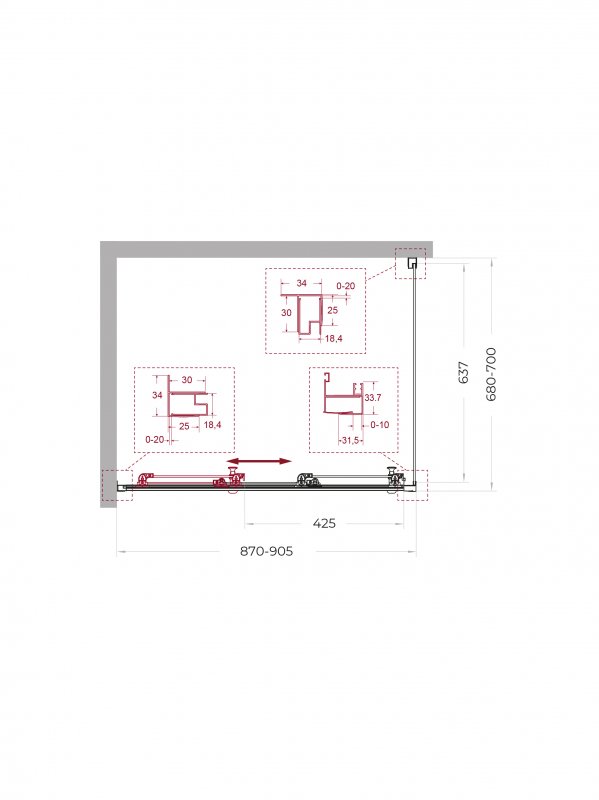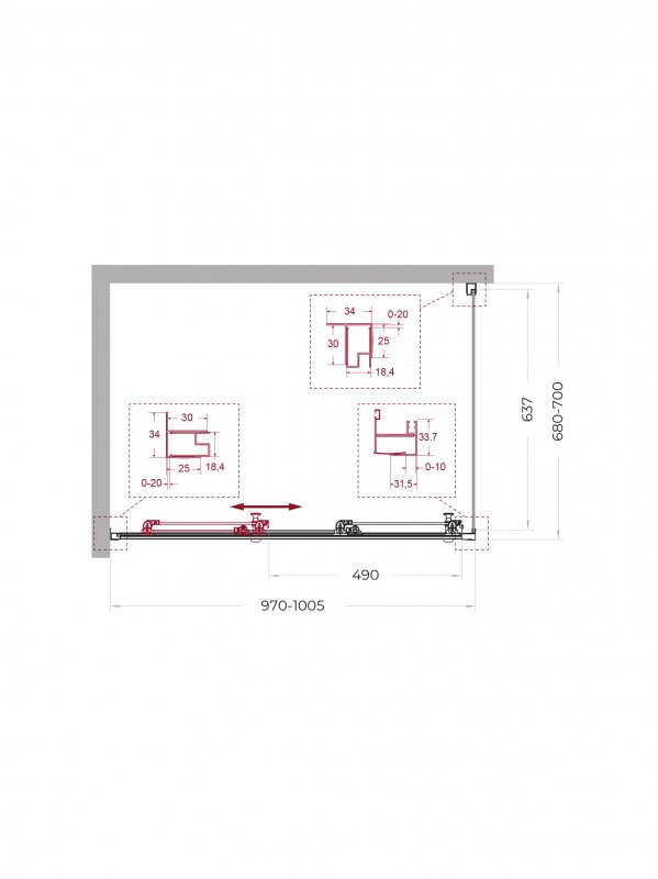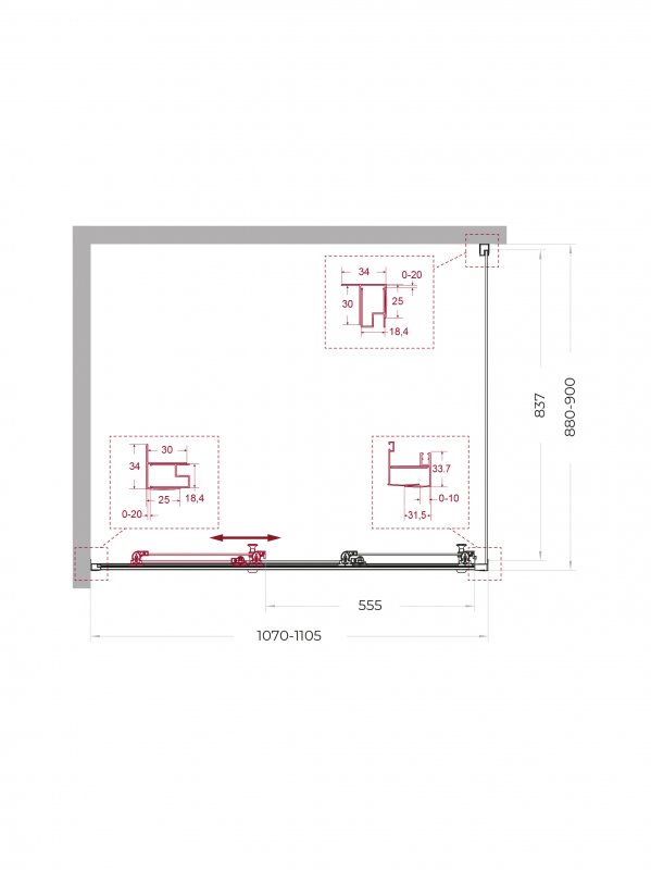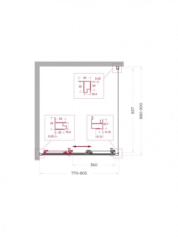 | UNO-195-AHF-31-90/100-C-NERO | 900x1000x1950 | (870-905)x(980-1000)x1950
