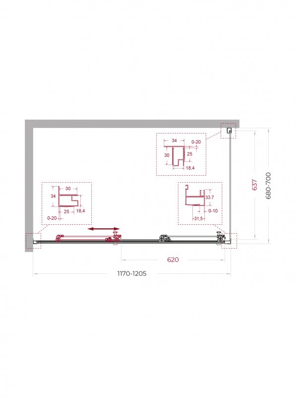 | UNO-195-AHF-31-120/90-P-Cr | 1200x900x1950 | (1170-1205)x(880-900)x1950