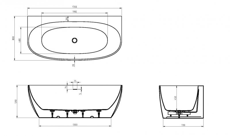 Акриловая ванна CEZARES CZR-LUX-CENTRAL-170-82-58-MATT